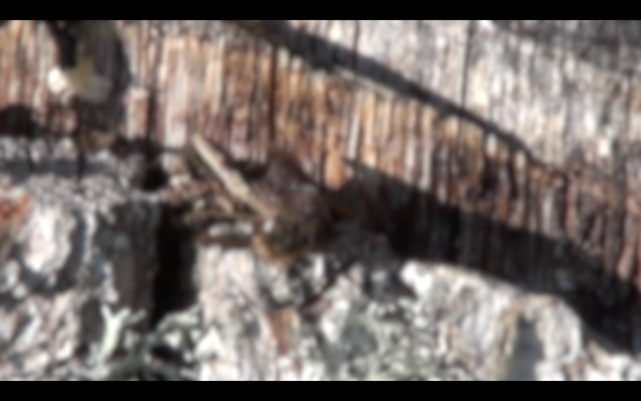 The film consists of a series of static shots, increasingly closer and closer to one tree. The lack of movement in the frame forms a stark contrast with the bucolic summer landscape. Everything seems frozen. The camera, starting with a broad view of the scene, ends the process of constant approach with a macroscopic close-up of the cut in the tree’s bark, at which point the camera’s technical powers fail to give us anything but a broken and blurred image. The inevitable decay of our field of vision is underpinned by the haunting sound of crickets.